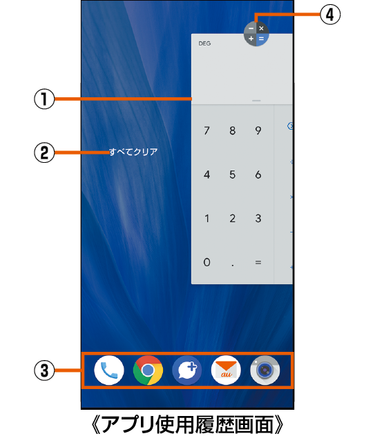 最近使用したアプリの履歴を表示し、アプリを起動することができます。