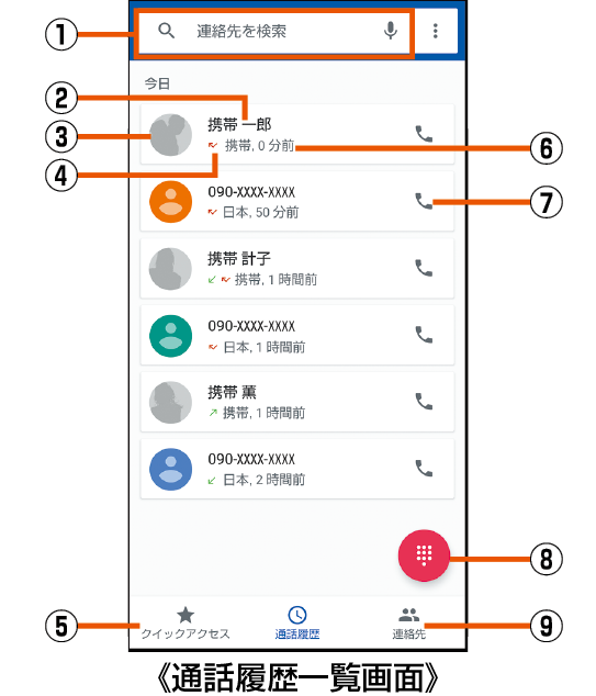 タップすると、電話帳への登録やメッセージの送信、通話履歴の詳細の確認などを行うことができます。