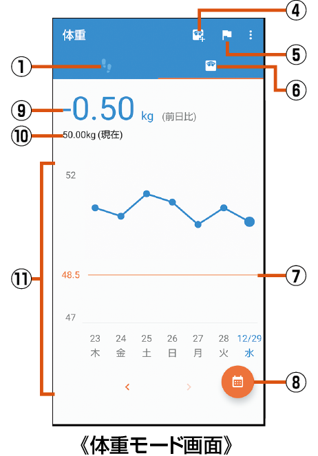 エモパーを利用すると、音声で体重を入力することもできます。詳しくは、「エモパーヘルスケアを利用する」をご参照ください。