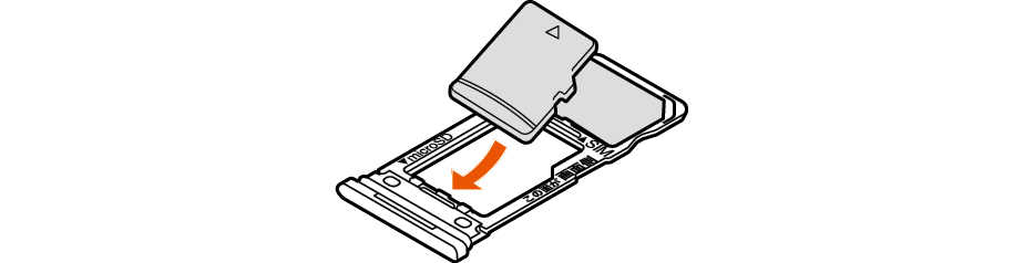 microSDメモリカードの端子(金属)面を下向きにして、au ICカード/microSDメモリカードトレイに取り付ける