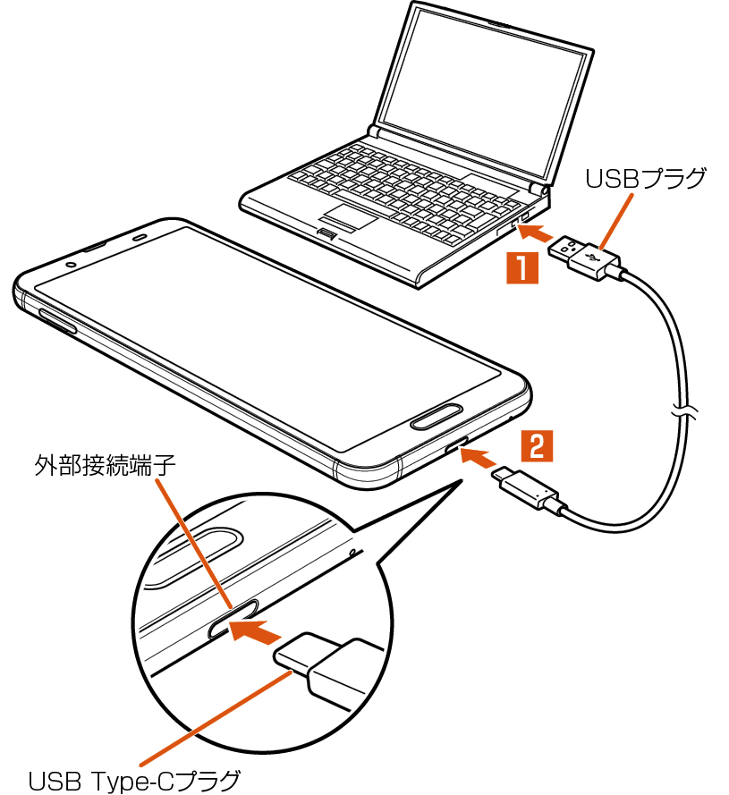 パソコンが完全に起動している状態で、USB Type-Cケーブル(市販品)をパソコンのUSBポートに接続
