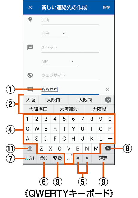 :入力した文字を大文字/小文字に切り替えたり、濁点/半濁点を付けたりします。
