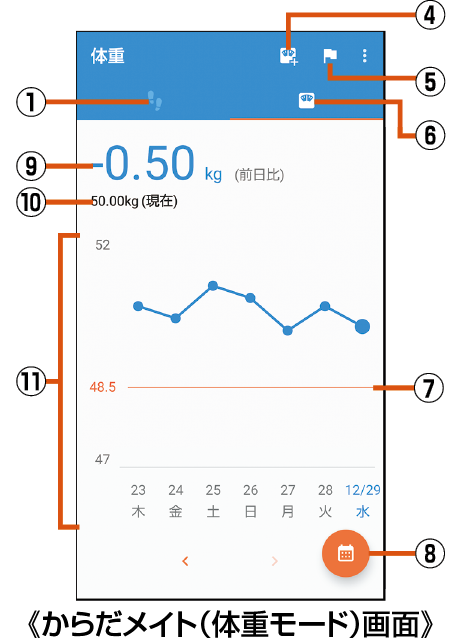 エモパーを利用すると、音声で体重を入力することもできます。詳しくは「エモパーヘルスケアを利用する」をご参照ください。