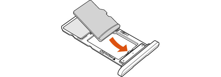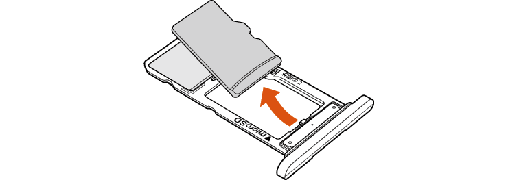 microSDメモリカードの向きに注意して、確実にトレイに取り付けてください。