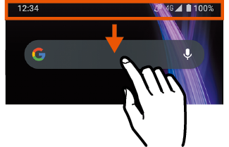 ホーム画面では、ステータスバー以外の位置から下にスライドしてもお知らせパネルを表示できます。