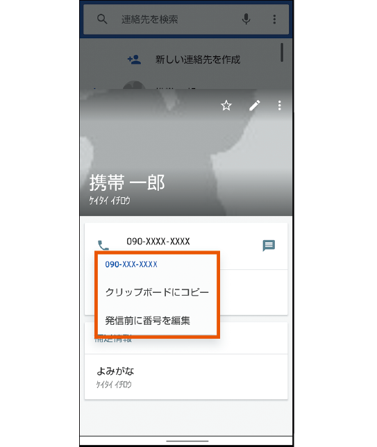 各項目やデータをロングタッチすると利用できるメニューが表示されます。