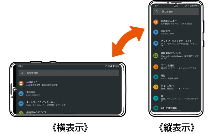 本製品の向きに合わせて、縦横表示を切り替えます。