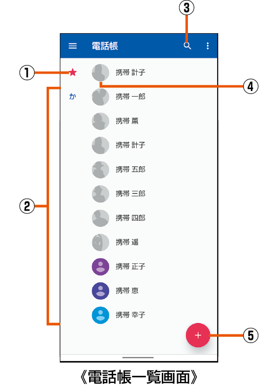 ホーム画面→「アプリ一覧画面」を表示→[電話帳]→[