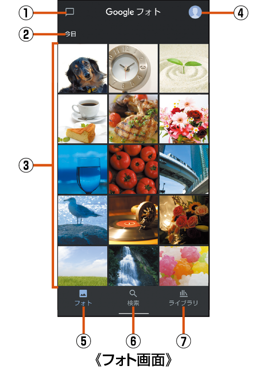 「フォト」アプリはPlay ストアより更新することができ、最新バージョンでは操作方法が変わることがあります。更新された場合は、フォト画面でアカウント設定のアイコンをタップ→[ヘルプとフィードバック]と操作し、内容をご確認ください。 |