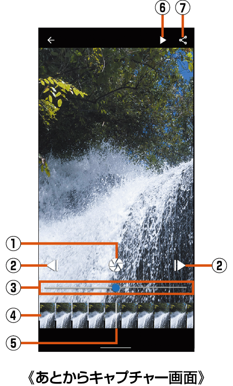 「写真を見る」をタップ、または動画再生中に画面を上にスワイプすると、静止画の確認などができます。