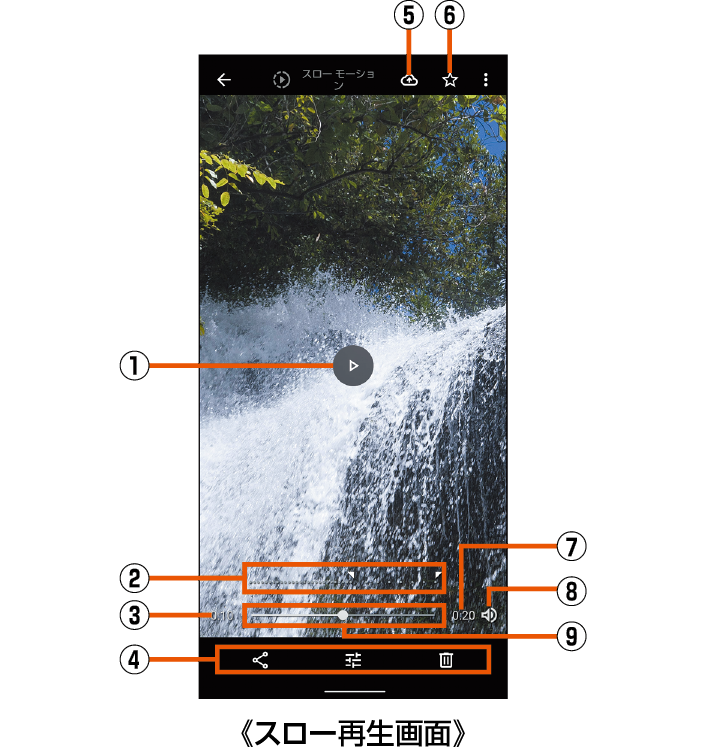 スロービデオで撮影した動画を、なめらかに再生したりスローで再生することができます。スロービデオで撮影した動画のサムネイルには「
