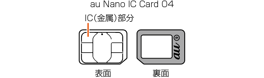 au ICカードを取り扱うときは、故障や破損の原因となりますので、次のことにご注意ください。 au ICカードのIC(金属)部分には触れないでください。 正しい挿入方向をご確認ください。 無理な取り付け、取り外しはしないでください。 |