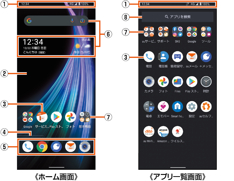 AQUOS Homeは、ホーム画面(デスクトップシート/お気に入りトレイ)とアプリ一覧画面で構成されたホームアプリです。
