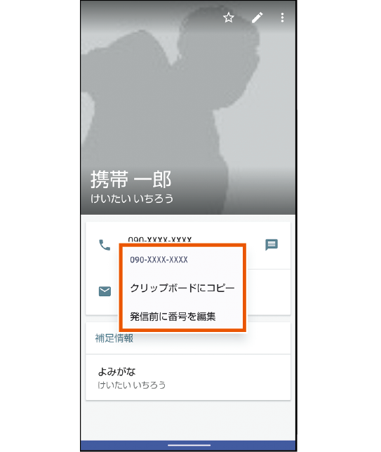 各項目やデータをロングタッチすると利用できるメニューが表示されます。