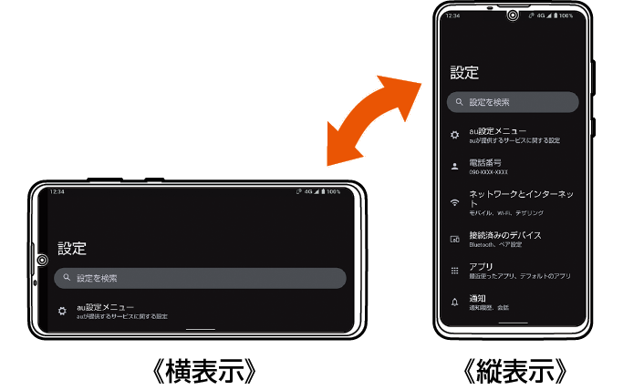 本製品の向きに合わせて、縦横表示を切り替えます。