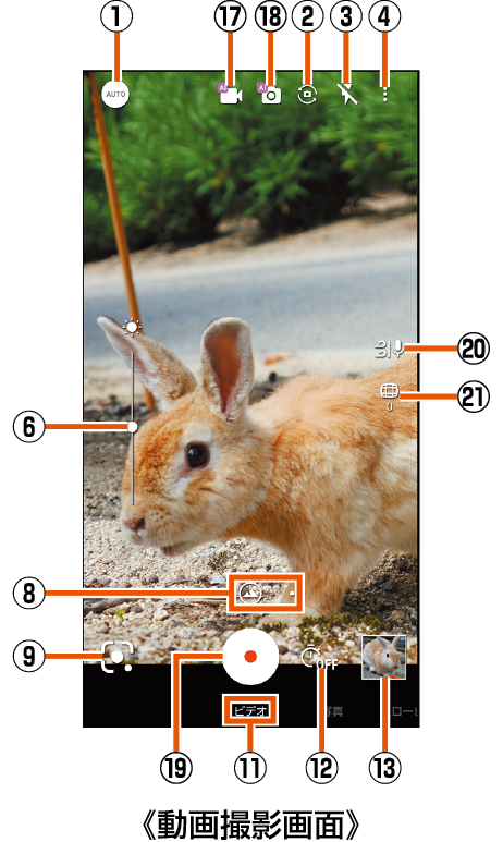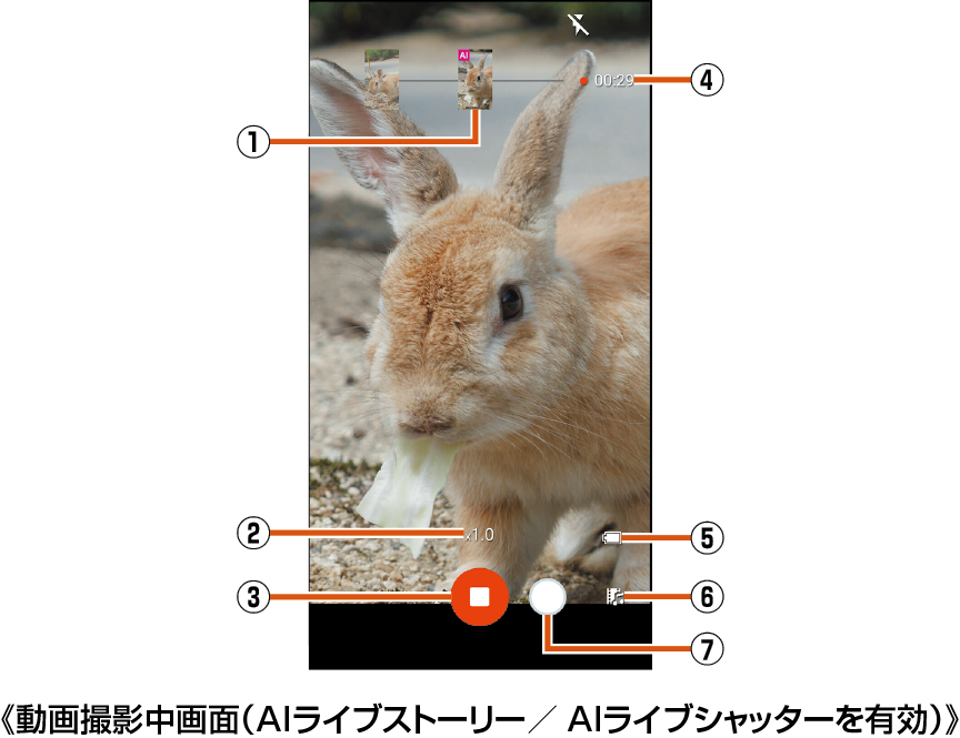 「AIライブシャッター」を有効にして動画撮影した場合は、自動で静止画を撮影します(⇒「撮影画面の見かた」)。