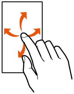 目的の方向へなぞって画面のスクロールやページの切り替えを行います。また、音量や明るさの調整時にバーの操作に使用します(スライド/スワイプ)。