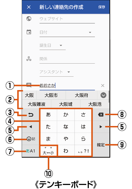 テンキーボードで変換キーを表示するには、あらかじめ「変換キー表示(テンキーボード)」を有効にしておいてください(⇒「その他の設定をする」)。