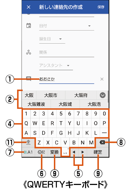 :入力した文字を大文字/小文字に切り替えたり、濁点/半濁点を付けたりします。