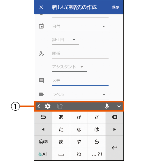 入力候補リストが表示されていないときは、キーボード上部にツールバーが表示されます。
