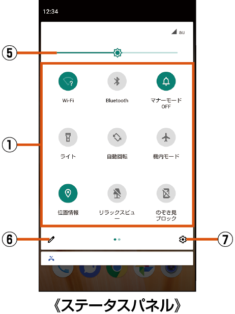 ステータスパネルでは、左右にフリックすると、ページを切り替えることができます。