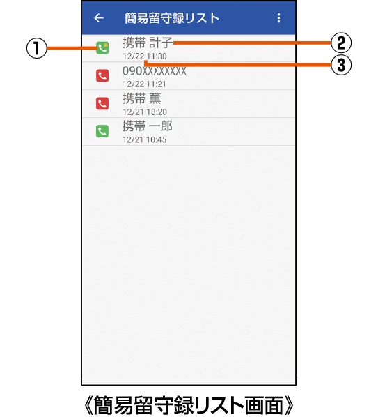 簡易留守録リスト画面の見かた