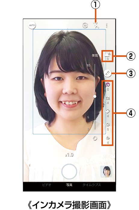 インカメラ撮影画面の見かた