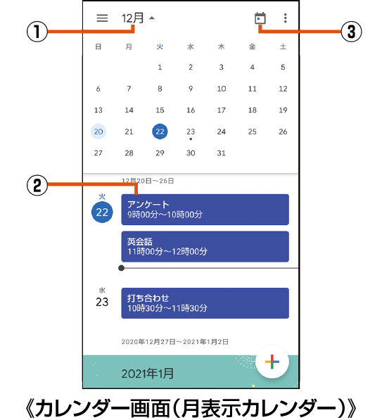 カレンダーの利用にはGoogleアカウントの設定が必要です。詳しくは、「初期設定を行う」をご参照ください。