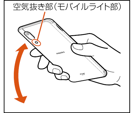 水に濡れた後は、必ずイヤホンマイク端子部、外部接続端子部、受話口(レシーバー)/スピーカー部、送話口(マイク)部、キー部、空気抜き部(モバイルライト部)などの水抜きをしてください。