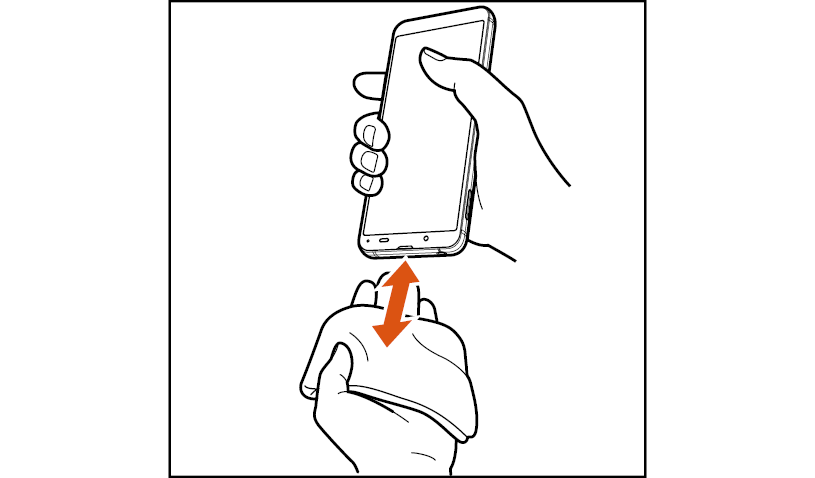 au ICカード/microSDメモリカードトレイが開かないように押さえたまま、ブラシやスポンジなどは使用せず手で洗ってください。洗った後は、水抜きをしてから使用してください。
