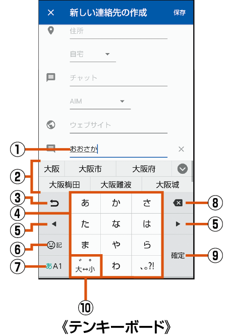 テンキーボードで変換キーを表示するには、あらかじめ「変換キー表示(テンキーボード)」を有効にしておいてください(⇒「その他の設定をする」)。