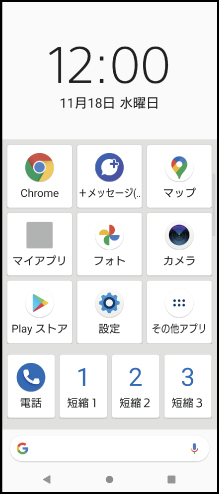 標準のホーム画面で表示される設定メニューを表示します。 |