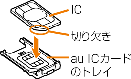 au ICカードのIC(金属)部分を上にしてau ICカードのトレイにはめ込む