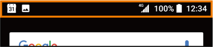 ステータスバーは、本製品の画面上部にあります。ステータスバーの左側には不在着信や新着メール、実行中の動作などをお知らせする通知アイコン、右側には本製品の状態を表すステータスアイコンが表示されます。