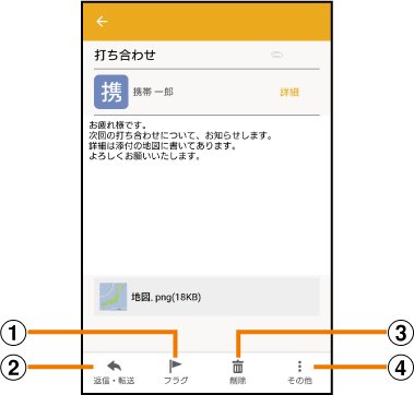 本メールのコピー編集・保存・迷惑メール報告などをします。