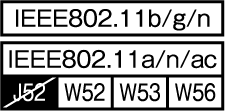 本製品の無線LAN(Wi-Fi®)機能は5GHz帯を使用します。電波法により5.2GHz帯および5.3GHz帯の屋外利用は禁止されております。