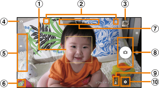 「パノラマ」などのカメラアプリをお使いの場合は、表示や操作が異なります。