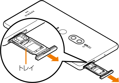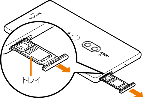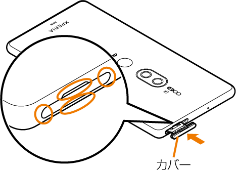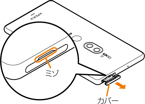 microSDメモリカード/au ICカード(SIMカード)挿入口のミゾに指先(爪)をかけて、カバーを矢印の方向に引き出す