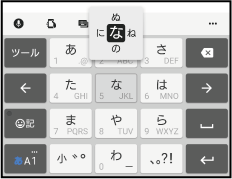 「な」はタップするだけで入力できます。「に」は左、「ぬ」は上、「ね」は右、「の」は下にそれぞれフリックして入力できます。