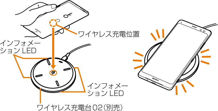 ここではワイヤレス充電台02(別売)を使って充電する方法を説明します。