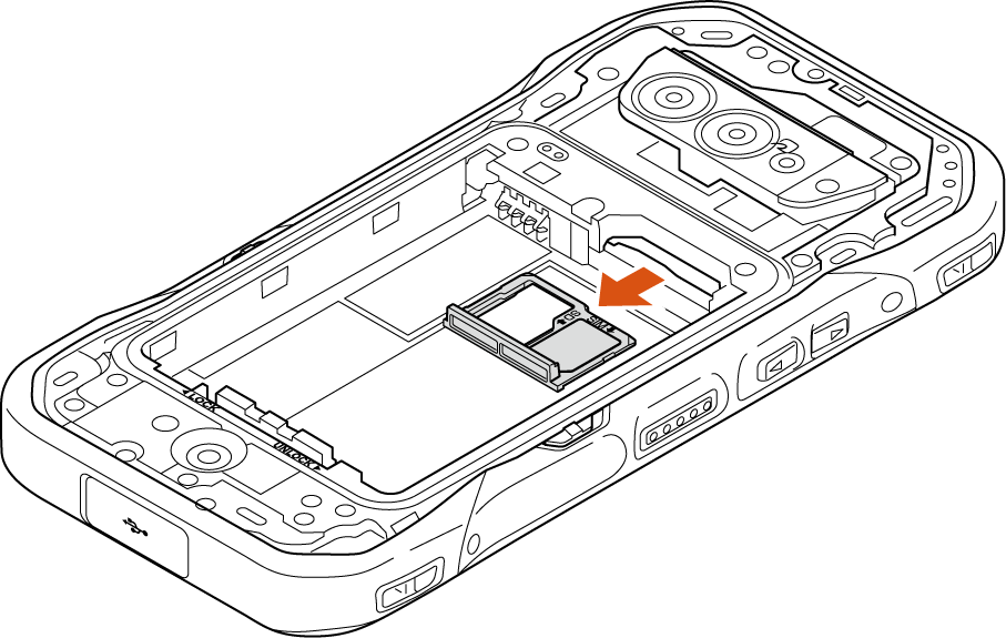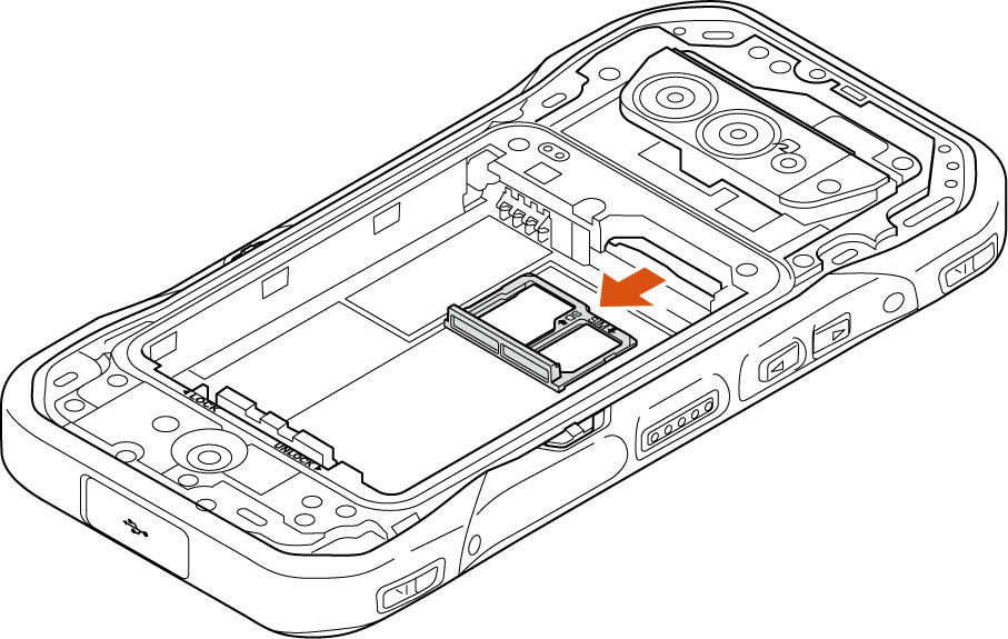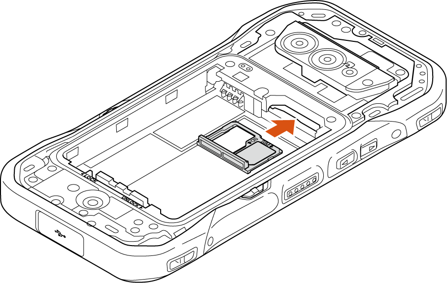 4SIMカード/microSDメモリカードトレイを本体に差し込んで、奥までまっすぐ押し込む