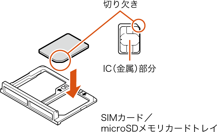 3SIMカードのIC(金属)部分を下にしてSIMカード/microSDメモリカードトレイにはめ込む