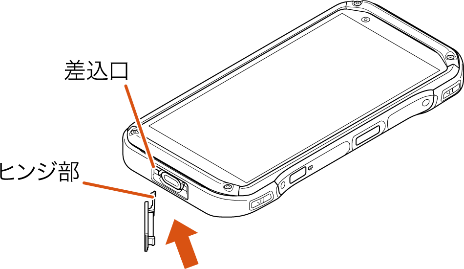 USBカバーのヒンジ部の先端を、差込口に差し込む