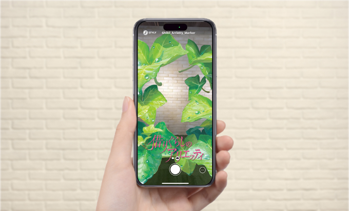 「借りぐらしのアリエッティ」ポスター付近に設置されたマーカーにスマートフォンをかざすことで、作品の世界に入り込める体験をあなたに。ぜひ会場でおためしください。