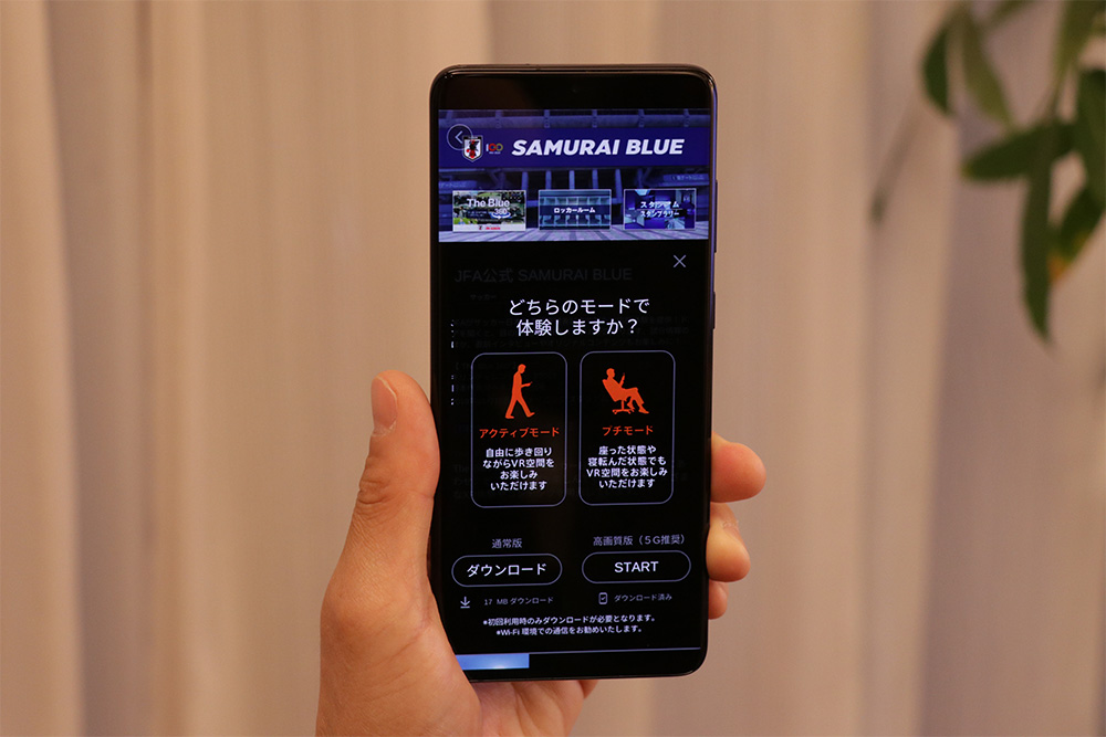 まず「The Blue 360°」だが、360°を見渡せるカメラでサッカー日本代表の活動の様子を撮影した、ここでしか見られないスペシャル映像を視聴することができた。「SAMURAI BLUE」の映像は過去の日本代表戦を360°カメラで撮影したスペシャル動画、「U-24日本代表」の映像は合宿風景の舞台裏を360°カメラで撮影したオリジナル動画だった。