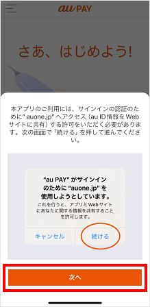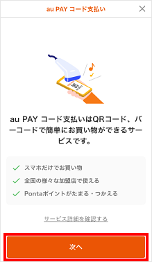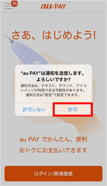 SMSを受信できる機種で「au PAY アプリ」をダウンロードし利用開始登録を行うと、au PAYをご利用いただけます。