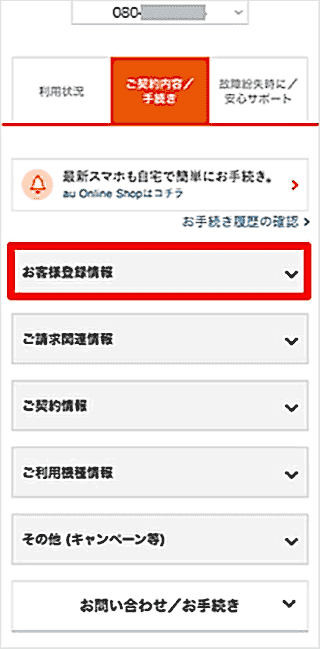 auご契約時にお決めいただいた4桁の暗証番号は、My auアプリの「マイページ」で変更できます。