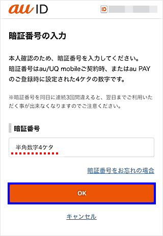 auご契約時にお決めいただいた4桁の暗証番号は、「au ID会員情報サイト」で変更できます。