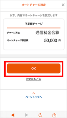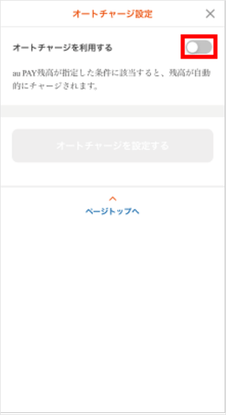 [オートチャージを利用する]のスイッチをタップしてオンにします。