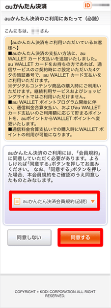 [au PAY(auかんたん決済)会員規約(必読)]をタップし、内容を確認します。